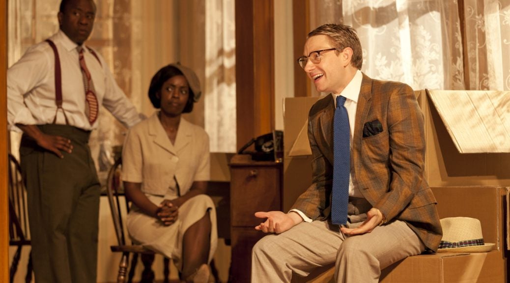 The performances take off with Martin Freeman justly confident in his comic ability, Sophie Thompson and Sarah Goldberg positively shinning, and Brown and Msamati again wonderful. There are some awkward moments as a series of tasteless old jokes are recited, less to entertain than to test reactions in a contrived manner, but generally this comedy of (bad) manners works superbly well.